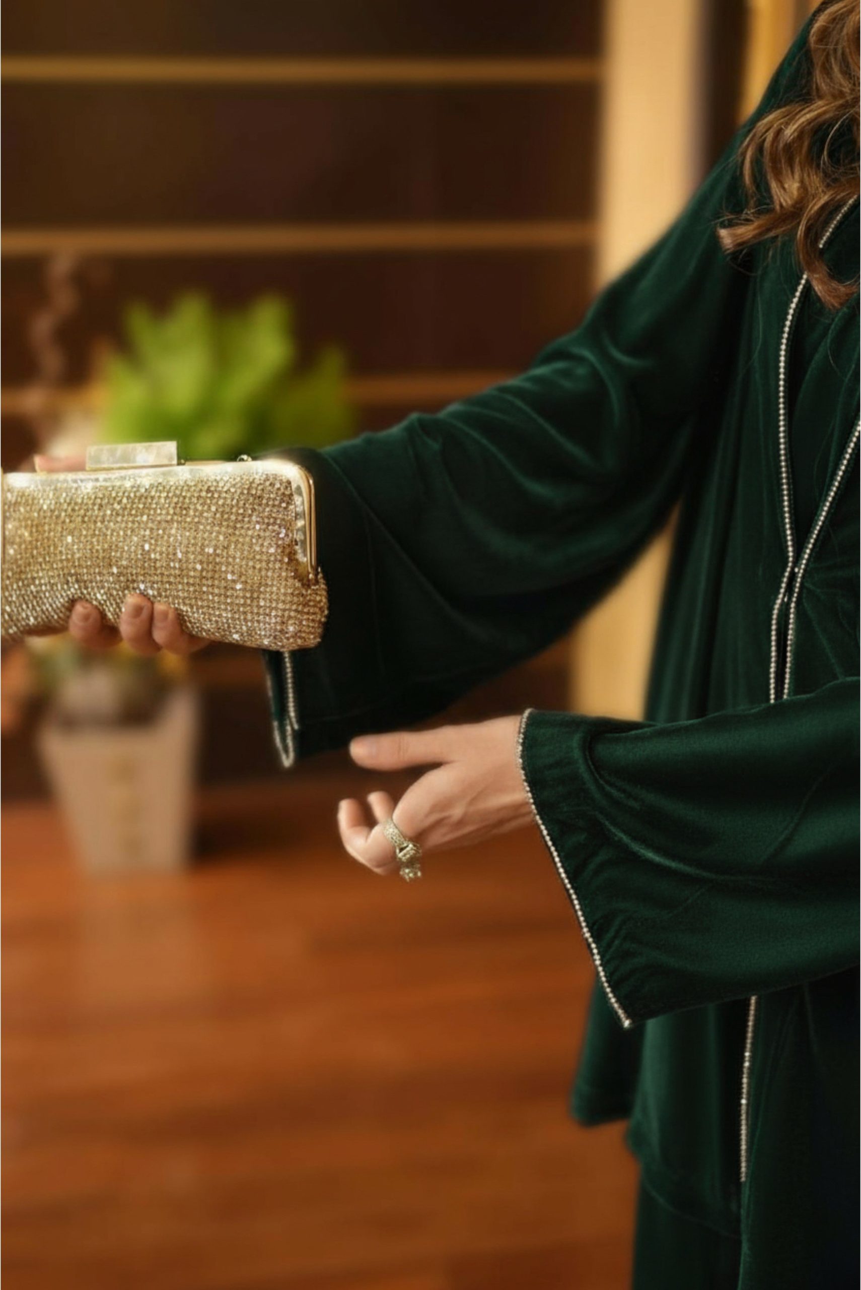 The jewel within — Draped in deep emerald velvet, Emera captures quiet opulence.