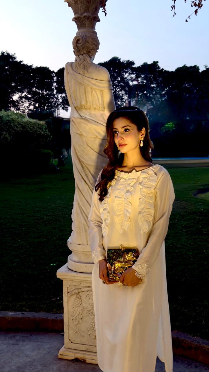 Goddess of the Moon— White silk that floats like moonlight, with delicate frills and floral whispers at the wrist — an ode to grace in its softest form.